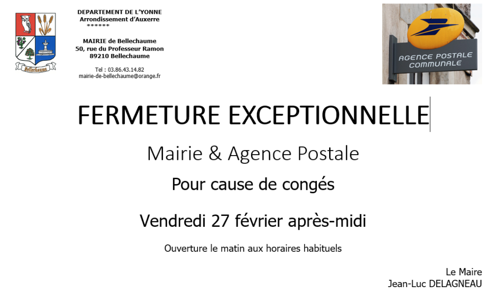 FERMETURE EXCEPTIONNELLE Vendredi 27 février après-midi